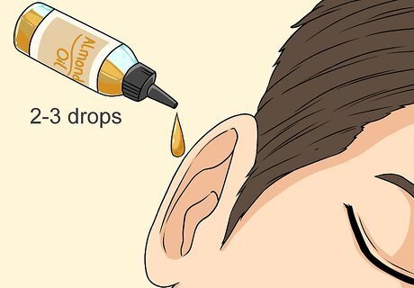 Soften your earwax with almond or olive oil if you have buildup. If you have an earache along with some difficulty hearing, squeeze 2-3 drops of oil into your ear. Do this twice a day and continue for a couple of days, or until your ears feel clearer. If you don’t notice any positive results within 2 weeks, talk to your doctor for help. While the results won’t be instant, you should feel better pretty quickly if extra wax build-up is causing your earache.