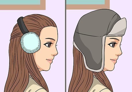 Protect your ears with muffs or a hat when going outside. Cold winds might make your ears ache a bit, so wear earmuffs or a warm hat as an extra protective layer. Make sure that your ears are completely covered and insulated before you head out.