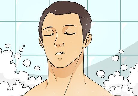 Breathe in some steam to soothe your ears quickly. Set up a humidifier in your room, or take a hot, steaming bath or shower. Immerse yourself in the steamy area and breathe deeply for several minutes, or until you feel the pain going away. This is especially helpful if your earache is caused by a cold.