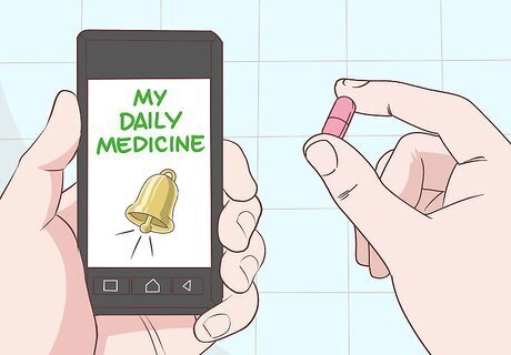 Create a daily routine for taking your medication. When you have HIV, it’s very important to take your medication every day in order to keep your infection under control. Skipping your medications can allow your infection to get worse, put you at risk of passing the virus on to others, and increase your risk of developing a drug-resistant strain of HIV. Work on developing a routine to help you stay on top of your daily doses. Try to take your medications at the same time each day. To help you with this, you might set an alarm, use a medication reminder app, or ask a friend or family member to help remind you. Let your doctor know if you have trouble sticking to your medication routine for any reason, such as difficulty remembering to take the pills, trouble swallowing your pills, or financial problems making it hard to afford your medication. They can give you advice about how to manage these issues. Never stop taking your medications, even if you don’t have any symptoms or tests show that your viral load is undetectable. Always talk to your doctor before making any changes to your medication routine.