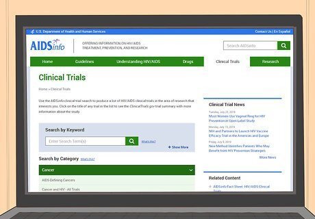 Look into joining a clinical trial. Clinical trials offer opportunities for you to try new and experimental treatments for HIV. Even if you don’t benefit directly from the trial, your participation may help other people with HIV in the future. Ask your doctor if they can recommend clinical trials in your area. You can find a list of clinical trials relating to the treatment of HIV and HIV/AIDS-related complications here: https://hivinfo.nih.gov/understanding-hiv/fact-sheets/hiv-and-aids-clinical-trials.