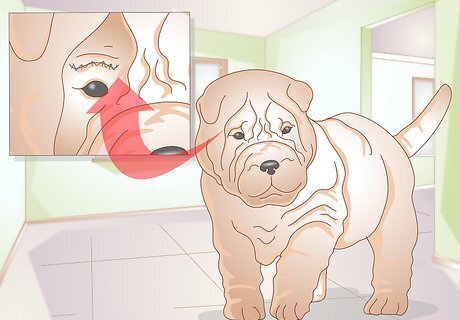 Get your dog examined. If you notice any symptoms of eye irritation, take your dog to the vet. The vet will examine your dog's eyes under magnification to see how well the eyelid sits against the cornea. The vet will also check to see if any hairs are rubbing against the surface of the eye. It's better to take your dog in if you suspect any eye irritation than to wait. When eye conditions like entropion are left untreated, your dog can develop secondary eye problems.