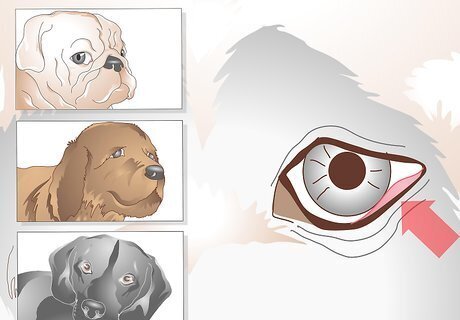 Consider your dog's risk. Dogs that are known for wrinkly faces (like Pekinese, Basset hounds, and pugs) are commonly associated with ingrown eyelids caused by entropion. This is because the weight of the extra skin pushes down on the eyelids which causes them to roll into the eye. Entropion can also occur in any breed. Entropion is often found in: Bulldogs Shih Tzus Boxers Cocker and springer spaniels Dalmatians Labradors Golden retrievers