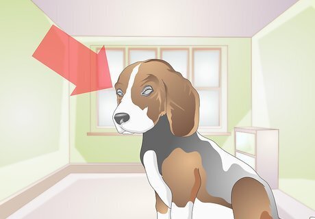 Look for your dog rubbing an eye. Your dog may rub at its eye with a paw. Since this may give your dog minor relief, your dog may continually swipe its eye with its paws so you'll need to monitor your dog for eye infection. If your dog develops an eye infection, you'll see yellow-green discharge. Instead of swiping its eye with a paw, your dog may rub its face along the ground.