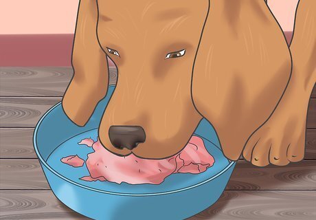 Give your dog a high quality, protein heavy diet. Carbohydrates like rice or pasta, and protein like eggs, cottage cheese, or white meats (chicken, turkey, rabbit) will help to counteract the protein deficiency usually found in dogs with liver failure. Special prescription diets suitable for dogs with liver failure are also available, such as Hills L/D, which contain easily digestible protein plus other supplements (vitamins and antioxidants). There can be complications with giving your dog a protein rich diet as your dog's appetite will likely be poor and the food may not be attractive to him. As well, loading his food bowl with protein will promote the fermentation that produces ammonia.