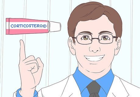 Ask about a prescription corticosteroid cream for severe sunburn. Your doctor may decide you need a more concentrated corticosteroid cream that’s only available by prescription. To use this cream, dab a very small amount directly onto your sunburn. Do your best not to get it onto your healthy skin, as it may cause irritation in large doses. The cream will help relieve your pain, inflammation, and itching. Your doctor may recommend you try over-the-counter treatments first. However, they might decide you need a prescription cream if your sunburn is interfering with your daily activities or if you’ve already tried home treatments.Variation: If your sunburn is widespread, your doctor may prescribe an oral corticosteroid, such as prednisone, to help relieve your pain, itching, and swelling.