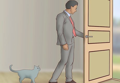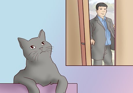 Don’t interact with your cat as you leave. Giving your cat extra attention and love when you leave will only worsen its separation anxiety—you’re actually telling your cat that your departure is a big deal. Instead, leave your home without speaking to your cat. When you come back home, wait a few minutes before interacting with your cat.
