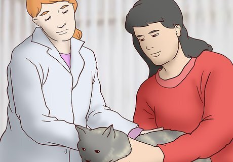 Have your vet examine your cat. After you tell your vet about your cat’s symptoms, allow your vet to perform a physical examination and other diagnostic tests. Diagnostic tests, such as blood work, urinalysis, and skin scrapes (thin scraping of the skin with a scalpel blade) will help your vet determine if your cat has a health problem. If an illness is present, your vet will prescribe the appropriate treatment. Treating the illness should resolve the symptoms. If your cat is healthy, separation anxiety is the likely cause of the symptoms.