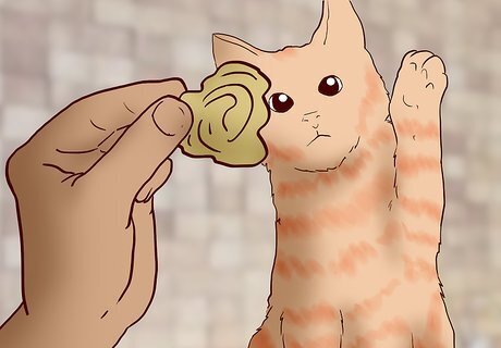 Teach your cat tricks. Surprisingly, cats are quite good at learning tricks. Teaching your cat tricks will help keep it physically and mentally active. Keep the training sessions short (about 5 minutes). When your cat masters the new trick, reward it with a scrumptious treat, like tuna. Rolling over is a fun trick to teach your cat.