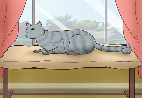 Place a perch by a window. If your cat has separation anxiety, you can lessen its anxiety by enriching its environment. With plenty of things to do and focus on, your cat won’t feel so distressed when you’re not around. A window perch will let your cat look outside. If you have a front or back porch, consider placing a bird feeder on the porch where your cat could see it. Perches are available at your local pet store. Consider moving the perch to different windows so your cat can experience different outdoor views.