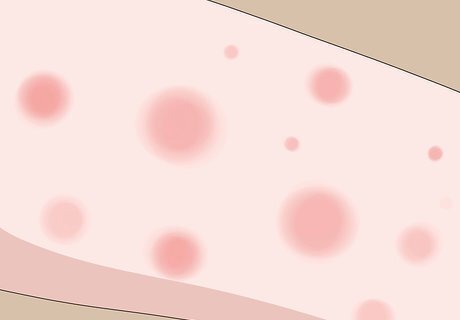 Watch for flat red spots on your skin. These spots will start at your trunk and move out towards your extremities. This is the eruptive phase of the virus, which begins about 24 hours after the onset of pre-eruptive phase symptoms. The red spots on your trunk and extremities will develop into blisters within a few days.Tip: The flat red spots are a definitive sign of smallpox infection. Prior to this point, a smallpox infection would simply look like a cold or the flu.