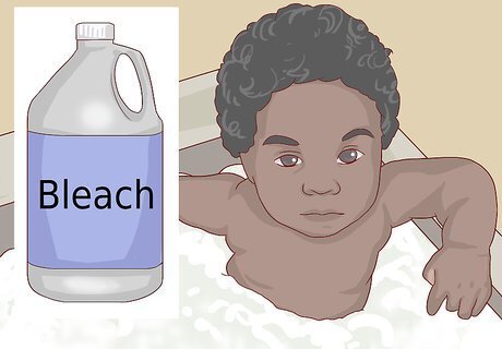 Try bleach baths. Your doctor may recommend bleach baths if your baby has moderate or severe eczema. Bleach baths will help control the bacteria on your baby’s skin. If your doctor recommends a bleach bath, put one or two teaspoons (15-30 milliliters) of bleach per gallon (4 liters) of water or add 1/4 cup (60 milliliters) to a half-tub of water. Use lukewarm water, and bathe your baby for ten minutes. Make sure your baby does not touch their eyes while in the bleach bath. You should only do the bleach bath two or three times per week. Within three minutes of leaving the bath, you should moisturize your baby’s skin.