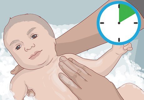 Bathe your baby in lukewarm water. Since hot water can remove too much oil from your baby’s skin, you should bathe them in lukewarm water. You should also avoid excessive amounts of bathing. Give your baby a ten-minute bath about 2-3 times per week. You can add colloidal oatmeal to the bath if you'd like, but either way pat your child dry after their bath.
