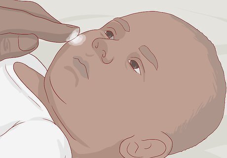 Moisture your baby’s skin. Apply a thick layer of moisturizer to your baby’s skin two to three times per day. In addition, every time your baby gets out of a bath, you should immediately moisturize their skin. Generally, ointment based moisturizers are best because they contain the most oil. If you cannot find an ointment, creams are also good. Lotions have less oil and don’t hold in the moisture as well, so pick an ointment or cream instead. Use a plain, fragrance-free, hypoallergenic emollient cream on your newborn's skin to lock in moisture after a bath. For instance, you might use a product like petroleum jelly or Aquaphor. For a more natural option, you might opt for sunflower or safflower oil. Regular lotions often contain a lot of alcohol, which can actually leave your baby's skin drier.