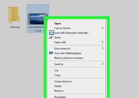 Open the folder that contains the video. If the video is on your desktop, just go to the desktop.