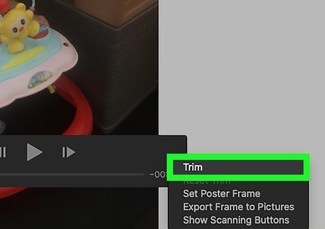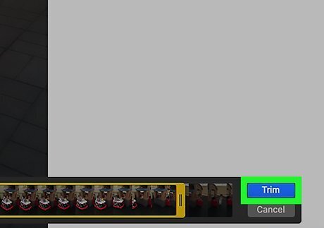 Click Trim. It's near the top-right corner of the window. A slider with two white knobs will appear below the video.