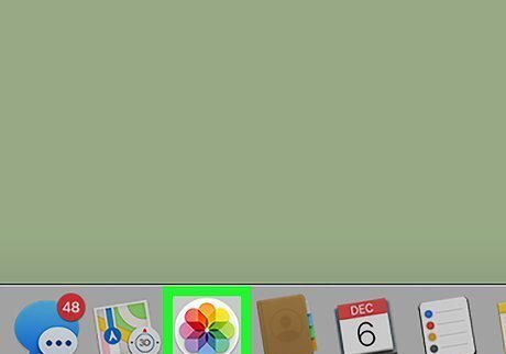 Open the Photos app on your Mac. You should find it on the dock. Look for the icon that looks like a photograph.