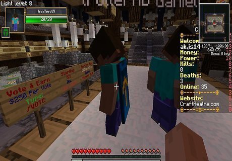 Make a simple Obsidian trap, and it would be Impossible to escape on Survival. You take a piece of flat land, about five squares by five squares. In each corner, you add three pieces of obsidian. After making four pillars, you then make a roof. Make it low enough so you can't jump, but you can move around. It works as a sort of hut. Between each pillar, there should be three spaces. Dig those spaces out, and replace them with "Sticky Pistons," facing up. You should then have nine squares in the center. Stand in the middle of those nine spaces, and put a pressure plate on every other space, apart from the one you are on. Your trap is done. In the space you were in, put a chest in it, and keep it empty. You then put a sign saying, "Free diamonds for anyone who can get in and out first." Learn how this trap snares. They will walk in, realise they were tricked, then, when they step on the pressure plates, they won't be able to get back out. Quick, simple, and you can wait till they get really angry and try to break the machine. It lasts for about five minutes before they escape.Troll on Minecraft Step 6.jpg
