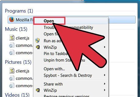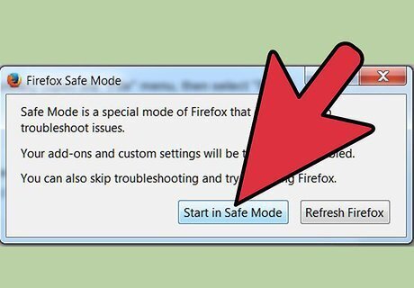 Click the Start button, open the All Programs list, and navigate to the Mozilla Firefox folder. Select "Mozilla Firefox (Safe Mode)".