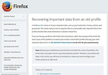 If the problem goes away, you can recover your important data. To avoid recreating the problem, only recover important files such as your bookmarks and saved passwords.
