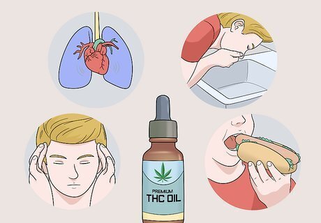 Consider the potential side effects of using THC. Even though it is a natural substance, there are some potentially negative side effects to be aware of before you begin using THC. If you experience any of these side effects while using THC, stop using it immediately. Side effects of THC may include: Dizziness Difficulty concentrating and remembering things Increased heart rate Slowed reaction time Increased appetite Vomiting repeatedly Hallucinations Warning: Be aware that THC may improve anxiety for some people, but for others it can intensify their anxiety symptoms.