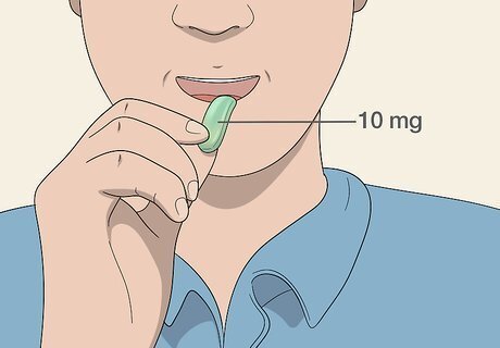 Consume one 10 mg dose of THC in food. Check the label to determine how much of the edible THC product to consume for a dose, but a typical dose is 10 mg per serving. To reduce the chances that the THC will have a strong effect on you, you could even eat half of a dose, such as 5 mg portion. Warning: Avoid eating more than the manufacturer recommends as this could result in a powerful high that could make anxiety worse.