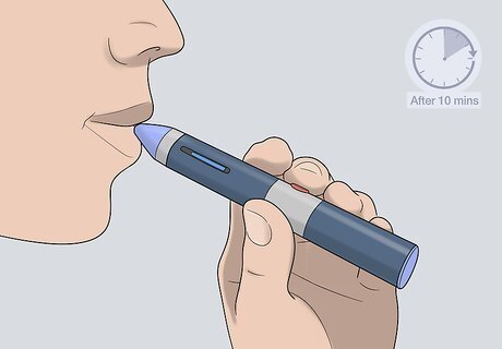 Smoke or inhale THC with a vaporizer for fast anxiety relief. Load the buds into a pipe or cigarette papers. Light the marijuana and inhale. This will allow the THC to go straight from your lungs to your bloodstream. Alternatively, use a vaporizing device. You may feel the effects within minutes or even immediately. Be aware that smoking and vaping pose serious health hazards. You can develop respiratory diseases, and some people have even died as a result of vaping.