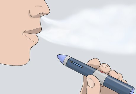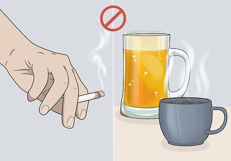 Avoid caffeine, nicotine, and alcohol. These substances may seem like they help you feel better, but they can all intensify anxiety. Don’t smoke cigarettes or use other products that contain nicotine. Also, cut back on your intake of caffeinated and alcoholic beverages or avoid them altogether. Try doing a deep breathing exercise instead of smoking a cigarette or using a vaporizer. Drink decaf coffee and herbal tea to reduce your caffeine intake. Have a mocktail when you go out with friends, or at least limit yourself to no more than 1 alcoholic beverage if you’re a woman or 2 alcoholic beverages if you’re a man.