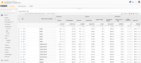 Drill down using multiple dimensions to better understand behavior on your own website. You can use GA on your own website to drill down by multiple dimensions together. For instance, rather than simply seeing the distribution by gender and age separately, you can see the distribution by combinations of gender and age. For instance, you might discover that your site is more popular among middle-aged males than middle-aged females, but also more popular among college-age females than college-age males. Similarly, you can drill down by combinations of gender and location, or age and location. GA's default interface only allows up to two drilldown dimensions at a time (a primary dimension and a secondary dimension), but you can create custom reports in GA that filter based on more than two dimensions. Unfortunately, publicly available QM data does not include benchmarks for combinations of dimensions. You can even combine demographic and interest dimensions (that are the focus of this page) with content-type dimensions, such as a specific page URL, or a type of visitor (based on engagement, session length, or whether the user is a new or repeat user). In particular, you can get insight about what pages on your website are visited more by people with particular demographics and interests. Note that this data may not be very useful if your overall site traffic is not large enough for the segments to have statistically robust information. Unfortunately, the benchmarks you obtain using publicly available QM data do not allow you to access corresponding data on other websites. One workaround is to use QM data on multiple websites as benchmarks for the performance of different sections of your website. For instance, if your online magazine has a cooking section and a fashion section, you can benchmark the cooking section against cooking websites and the fashion section against fashion websites. You can also look at the changes over time in various metrics for the dimensions you are considering.