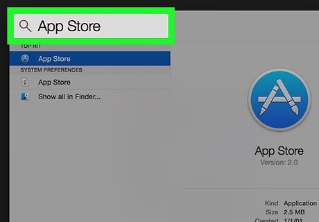 Type in "App Store". The App Store has a blue icon with a pencil and paint brush in the shape of the letter "A".
