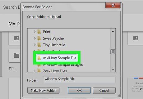 Click the folder you wish to upload. This highlights the folder in a different color.