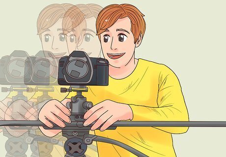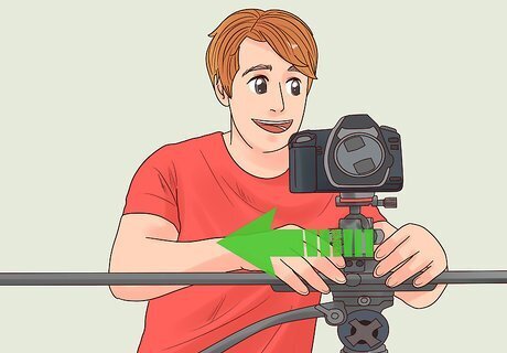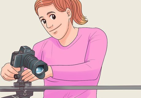 Experiment with free-form movement. Play around with different combinations of dynamic techniques like pan, tilt, dolly, and jib to invent your own unique shots and camera angles. Between the sliding track and the swiveling ball head, there's virtually no limit to the number of potential shots you can put together. If you come up with a particularly eye-catching shot, write down the techniques you used so you'll be able to duplicate it later.
