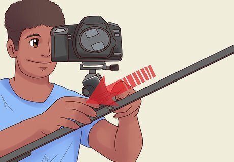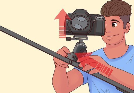 Angle the track rather than the camera for two-dimensional slides. This is where your ball head attachment will come in handy. You might use an elevated track to follow your subject as they climb a flight of stairs, or even create jib shots in which the camera moves up or down vertically, depending on the specific angle you choose. It's especially important to double-check that your camera is properly secured when attempting angled slider shots.