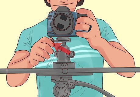 Snap your camera into place on the ball head. Position your camera on top of the base and press down firmly. You should hear a faint click as the camera makes a connection. Some sliders may connect to a separate tripod mounting plate rather than to the camera itself.