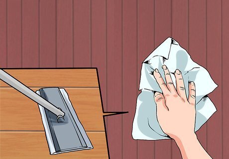 Use Swiffer cloths as handheld dusters. Take a dry mopping cloth for a Swiffer and use it as a handheld cloth to remove dust from surfaces around your home. Then attach it to the Swiffer to clean the floor, completing all your dusting with just one product. Swiffer the floors after you dust surfaces so you can catch any dust that may have been brushed to the floor in the process. Try using the cloth on tabletops, TV screens and other electronics, lamps, baseboards, shelves, etc.