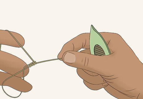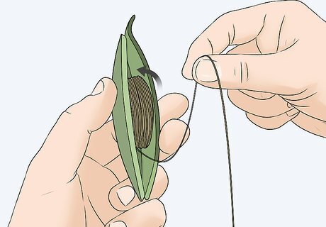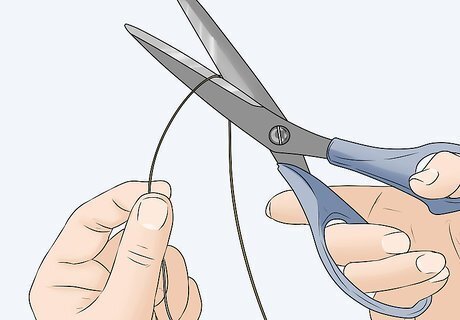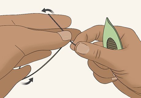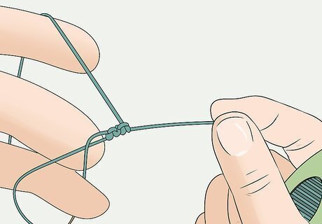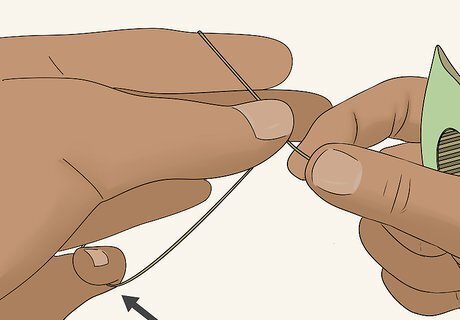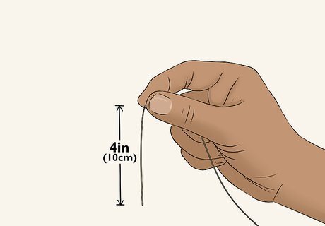Hold the end of the thread with your non-dominant hand. Pinch the end of the thread between your thumb and index finger. You can let about 4 inches (10 cm) of the tail hang down past the point where you're pinching. Keep holding the end of the thread in place so your loop doesn't fall apart.