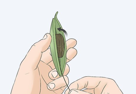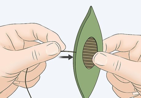 Insert the thread through the hole in the middle of the shuttle. Turn the shuttle on its side so you can see the hole in the center. Then, take the end of your thread and push it through the small hole so 1 inch (2.5 cm) of the thread extends from the side of the shuttle.Variation: If you're using a homemade shuttle with 2 holes at each end, insert the thread through 1 of the holes at an end. Wrap the thread around the shuttle, through the opposite hole and then back. Keep wrapping so the thread catches on the holes.