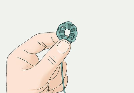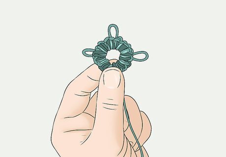 Practice making rings. Once you're comfortable making double stitches, work at least 7 or 8 of them. Hold the stitches in your left hand and use the hand with the shuttle to pull tightly on the thread between the stitches and the shuttle. Keep pulling until the stitches curl in on themselves and form a tight ring.Variation: To expand the ring, pinch the stitches you've already made and pull on the thread below them until the ring is as big as you like. To make a large ring, work with thicker thread or make at least a dozen stitches before pulling the thread.