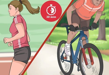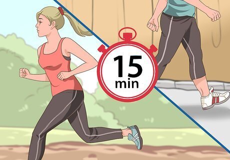 Take a brief walk or jog. Once you have completed your workout, take a walk or jog to help cool down your muscles. Walk or jog around the park for 10-30 minutes and slow down during the last 5 minutes. This will help your muscles stay warm and keep them from tightening too much. Walking, jogging, or riding your bike home is also a great cool down exercise.