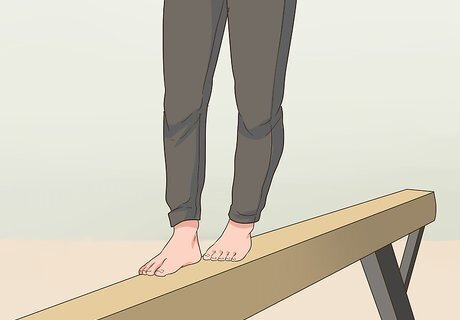 Walk the balance beam. Working on your balance is a great way to strengthen your core. If your outdoor gym has a balance beam, walk along the beam while maintaining upright posture. Try not to fall off the beam and walk with controlled steps. As you get more comfortable on the beam, slow down your steps and practice walking heel to toe for a better workout.