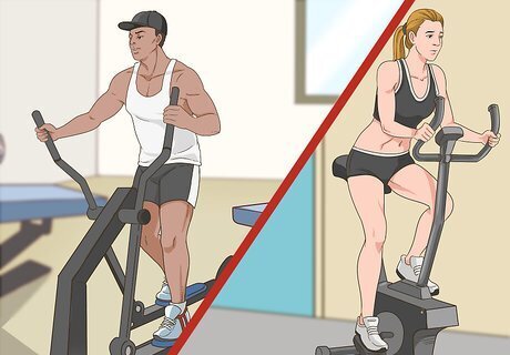 Use a cardio station. Depending on the equipment available at your gym, you may have access to various cardio stations like a cardio walker, elliptical station, or an upright cycle. These machines are great for warming up and getting some cardiovascular exercise. The benefit of these machines is that they will help warm up your upper body and not just your legs. If you're beginning a new workout routine, start out slow and increase the amount of time you spend on the machine as you get more fit.