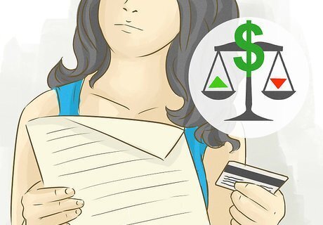 Pay more than the minimum payment on your credit cards. Your credit card statement should tell you the minimum you will be charged and how much time it will take you to pay off the balance if you only pay the minimum. Try to double up payments and pay that amount each month. If you have debts on multiple cards, then pay down the card with the highest interest rate first. Pay at least the minimum on all cards and then apply extra money to the card with the highest interest rate. Once you’ve paid off that card, apply your payments to the card with the next-highest interest rate.
