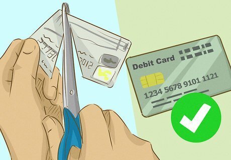 Get a debit card. With a debit card, you can only spend the amount of money that is in your bank account. Once you go over the limit, your card is declined. Contact your bank for a debit card. Debit cards have some advantages over cash. For example, if someone steals the card (or if you lose it), you can report the card as missing and the account will be frozen.