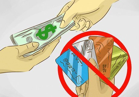 Use cash. Cash is convenient and accepted almost anywhere. Furthermore, people will spend about 15% less when using cash instead of credit. Remember to take cash directly out of your checking account—don’t get a cash advance using a credit card, since you will be charged a high interest rate. Of course, you shouldn’t carry large amounts of cash on you, because you will become a target for thieves. Nevertheless, you can carry as much cash as you would normally spend on any given day.