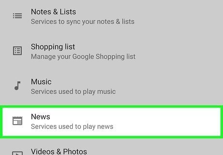 Tap News. It's the fourth option under the "Services" tab. This is where you add news sources Google Assistant can use when you ask it for the latest news.