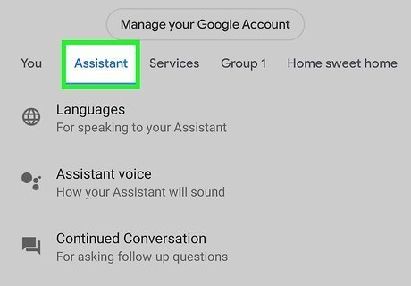 Tap the Assistant tab. It's the second tab at the top of the page. This displays the Google Assistant Settings.