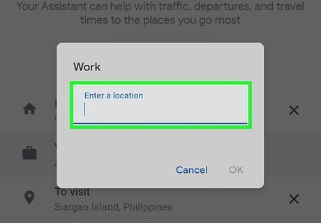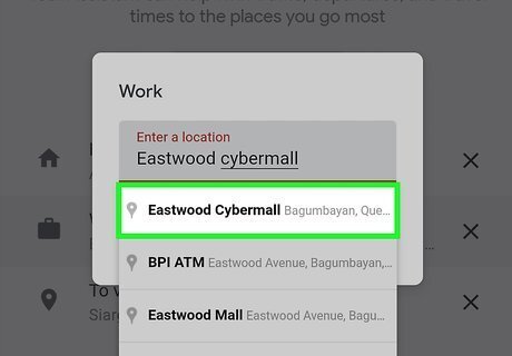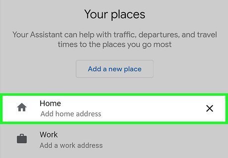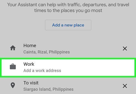 Tap your work address. This adds your work address to your locations. With your home and work address added, Google Assistant can give you updates on your commute.