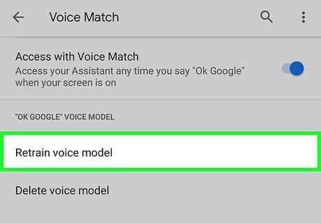 Tap Retrain voice model. It's below "Okay Google" voice model. This trains the Google Assistant to recognize your voice.