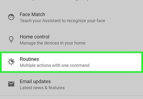 Tap Routines. It's next to an icon that resembles a sun and a moon. Routines are commands you can give your Google Assistant that have multiple actions.