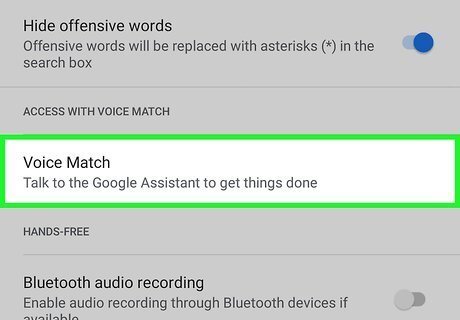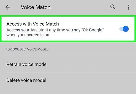 Turn on Android 7 Switch On next to "Access with Voice Match". This allows you to access Google Assistant with your voice on your Android device.